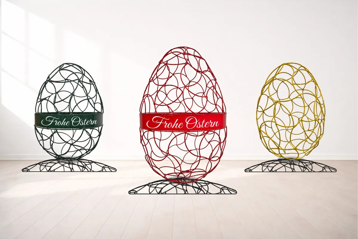Das Alganic Osterei ist eine freistehende Skulptur aus Aluminium – entwickelt für professionelle Objektdekoration und jetzt auch für saisonale Einzelinszenierungen erhältlich.